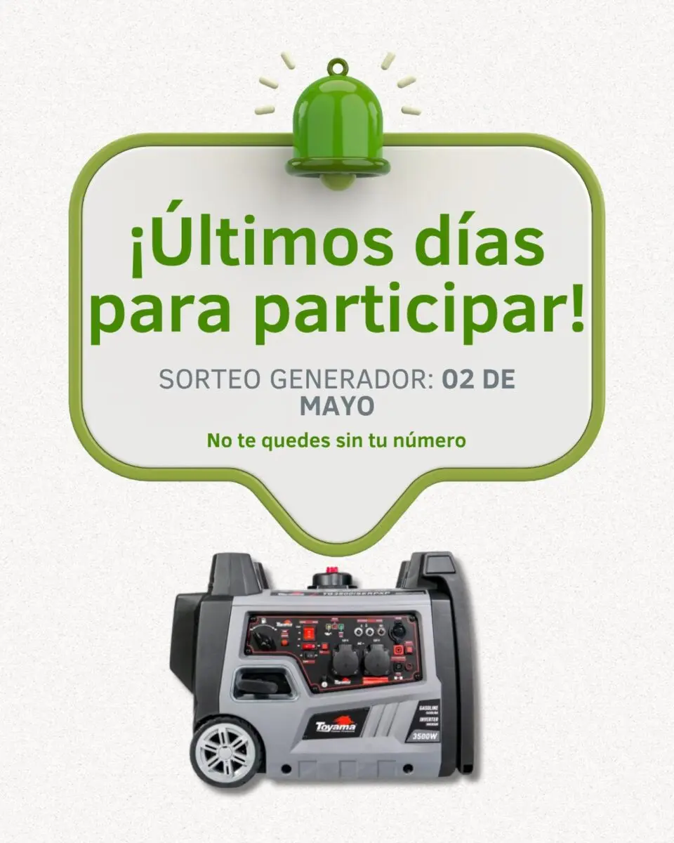 Elige tu generador según las horas continuas de uso: Domiciliario Máx. 8 hrs – Empresarial 12 hrs o más.