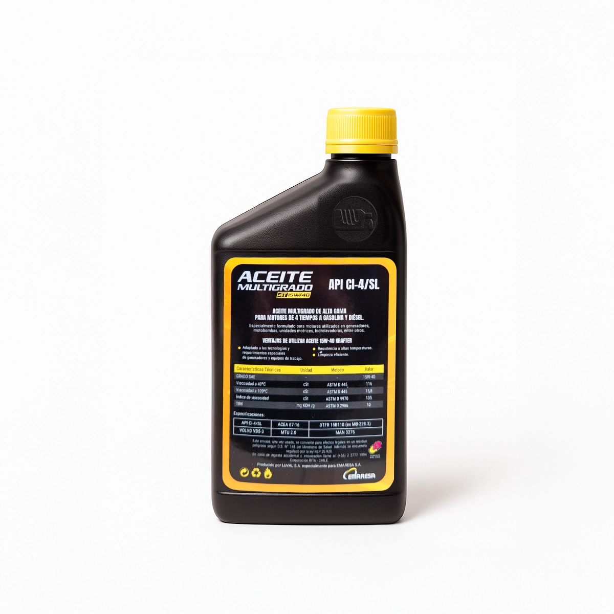 limpieza interna del motor y brindando una excelente protección contra el desgaste. Cumple con exigentes estándares internacionales como API CI-4/SL y ACEA E7-16, lo que lo convierte en una opción ideal para generadores, motobombas, unidades motrices y otros