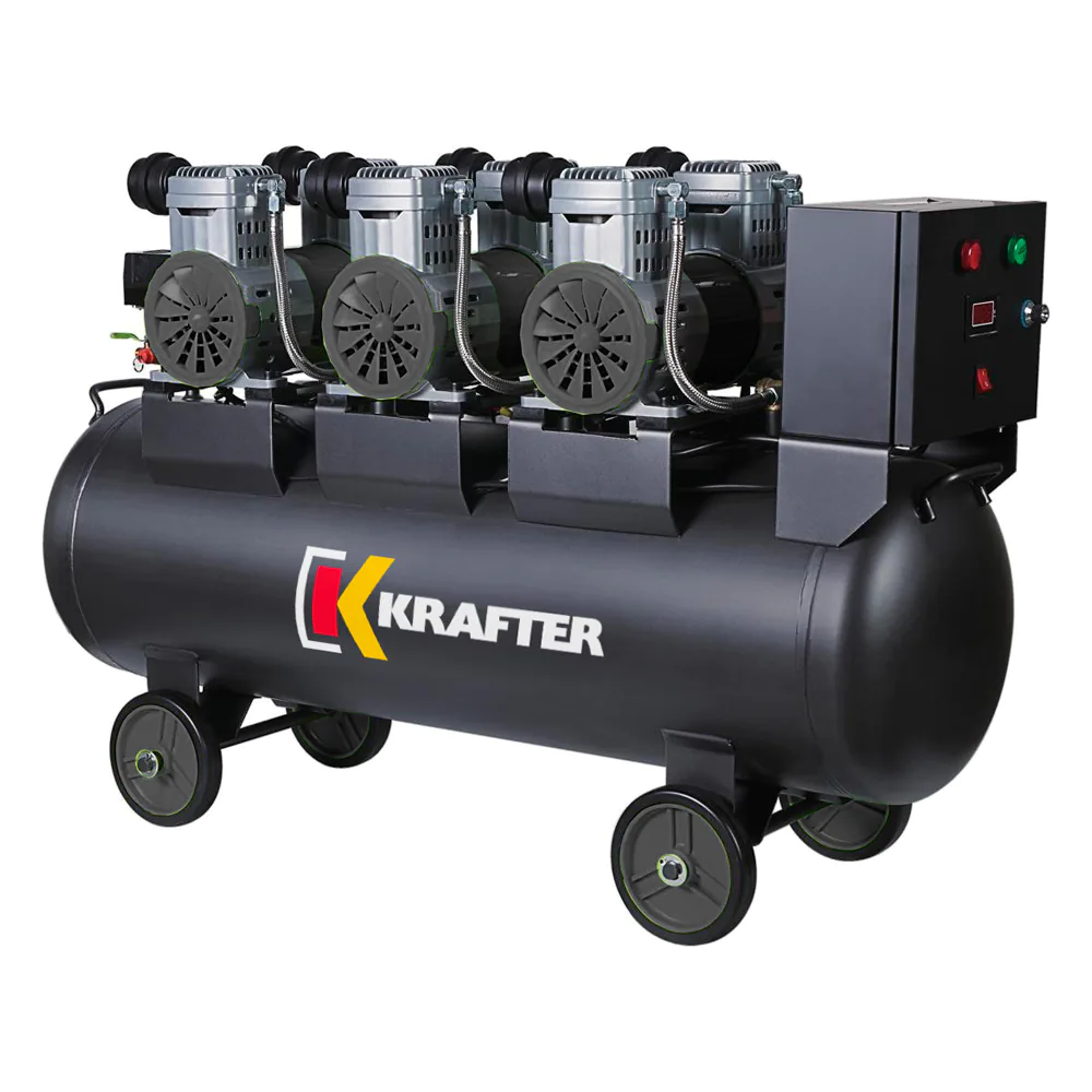 Compresor Libre De Aceite Krafter Monofásico 3 Motores 2HP 100L 116psi