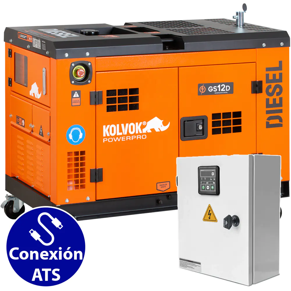 Generador Kolvok Diesel 9/10 Kw Partida Electrica 220v GS12D + ATS