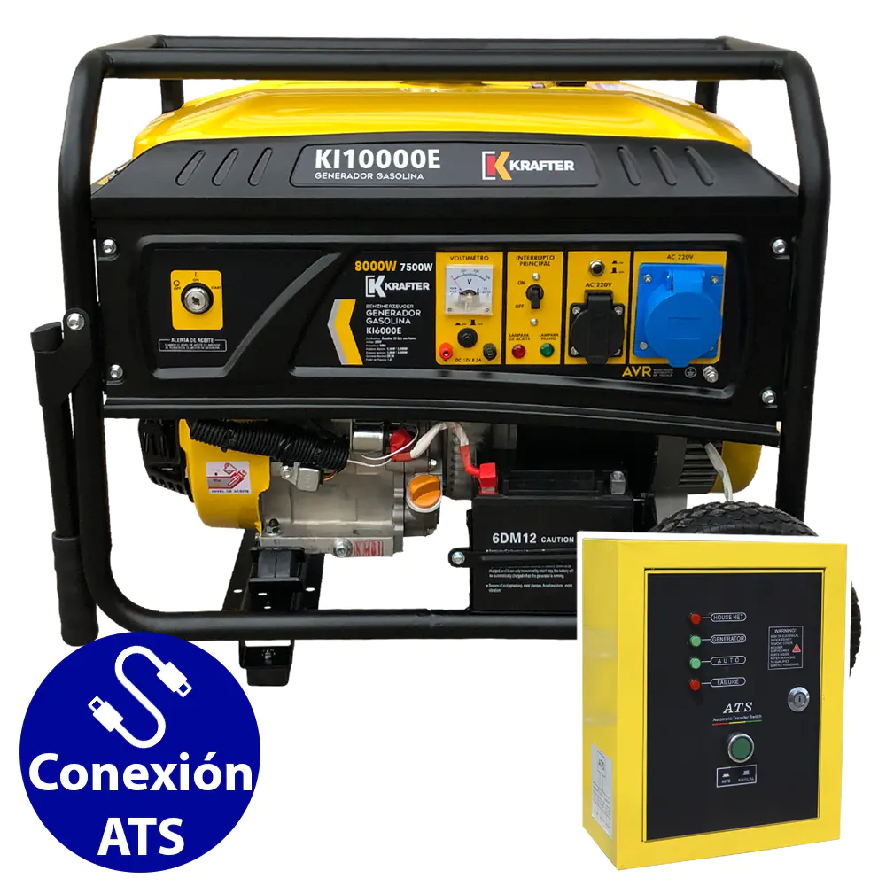 Generador Krafter Gasolina 7.5/8 Kw Partida Eléctrica 220v KI10000E + ATS